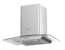 1. Máy hút mùi hình cong, tích hợp hoàn hảo tù bếp treo tường.